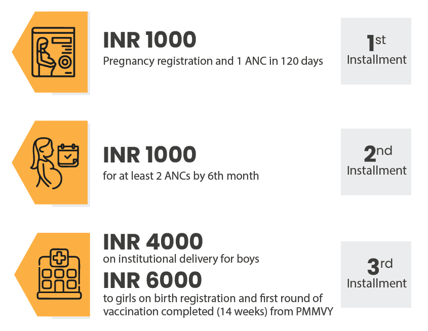 Under MMMPY, second-time pregnant women receive cash transfers of ₹6,000/8,000 in three instalments on the fulfilment of certain conditions, such as registration of pregnancy, antenatal checkups, and institutional delivery. These promote healthcare-seeking behaviours, thereby ensuring that mothers and children receive adequate care.